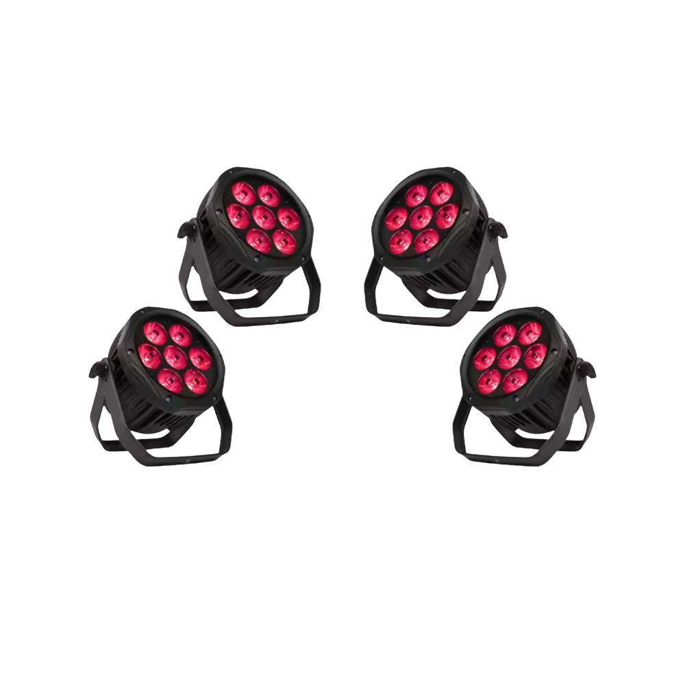 Deze veelzijdige lichtset met 4 IP65 par spots is ideaal voor het sfeervol uitlichten van locaties, zowel binnen als buiten. Dankzij de weerbestendige IP65-behuizing zijn de spots perfect voor tuinfeesten, bruiloften, podia of evenementen waar betrouwbare verlichting nodig is.